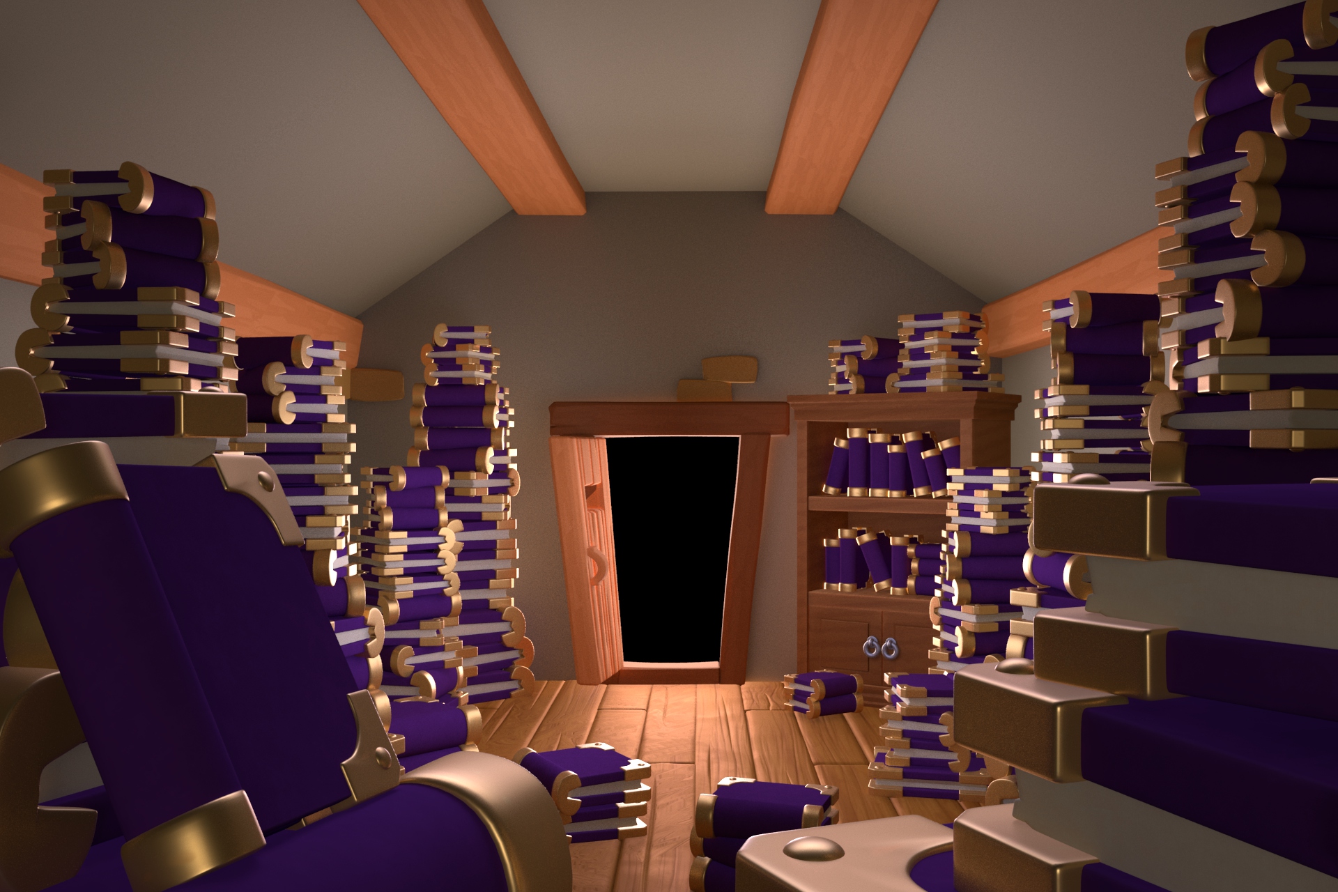 Everdale Book Storage: book model/rig/material, in-house assets & lighting