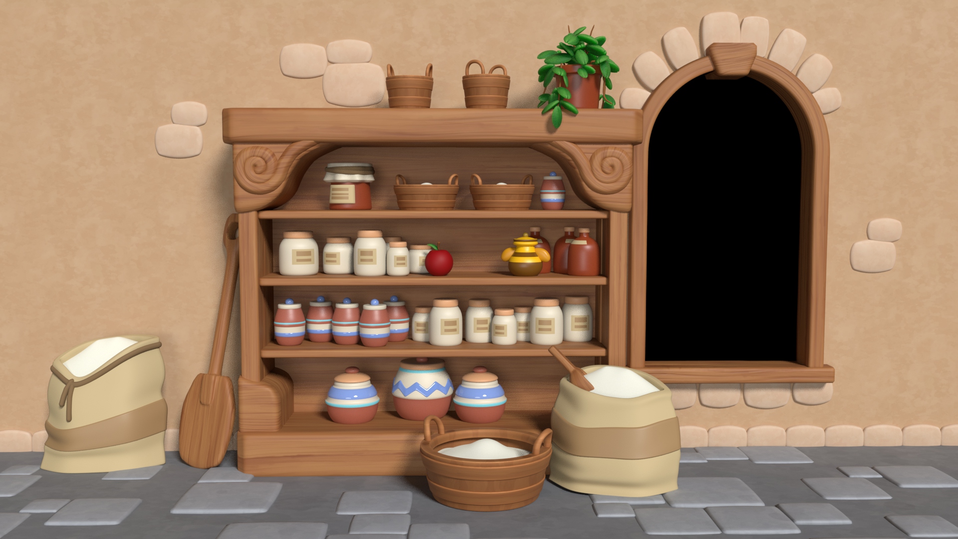 Everdale Bakery Backdrop: in-house assets & lighting